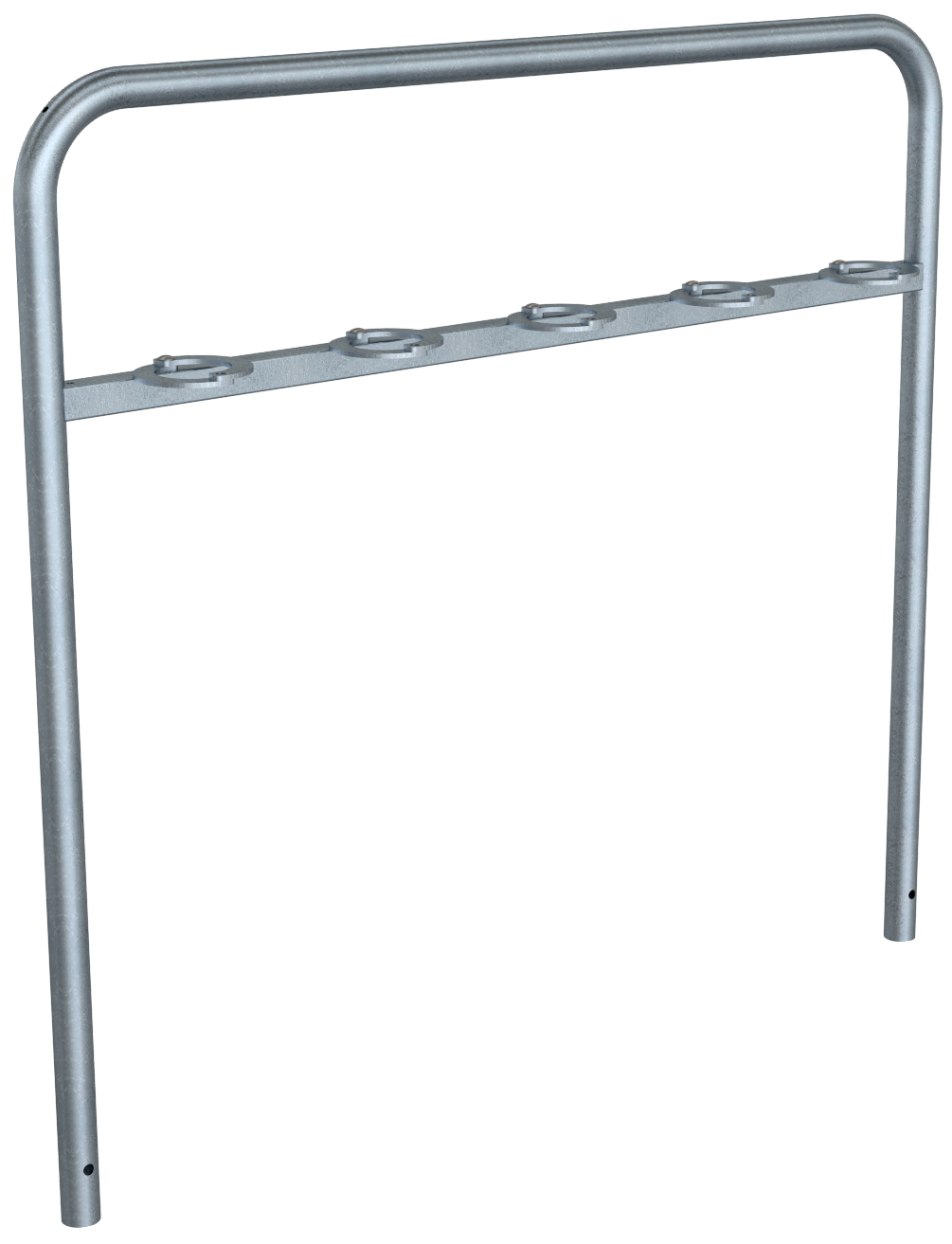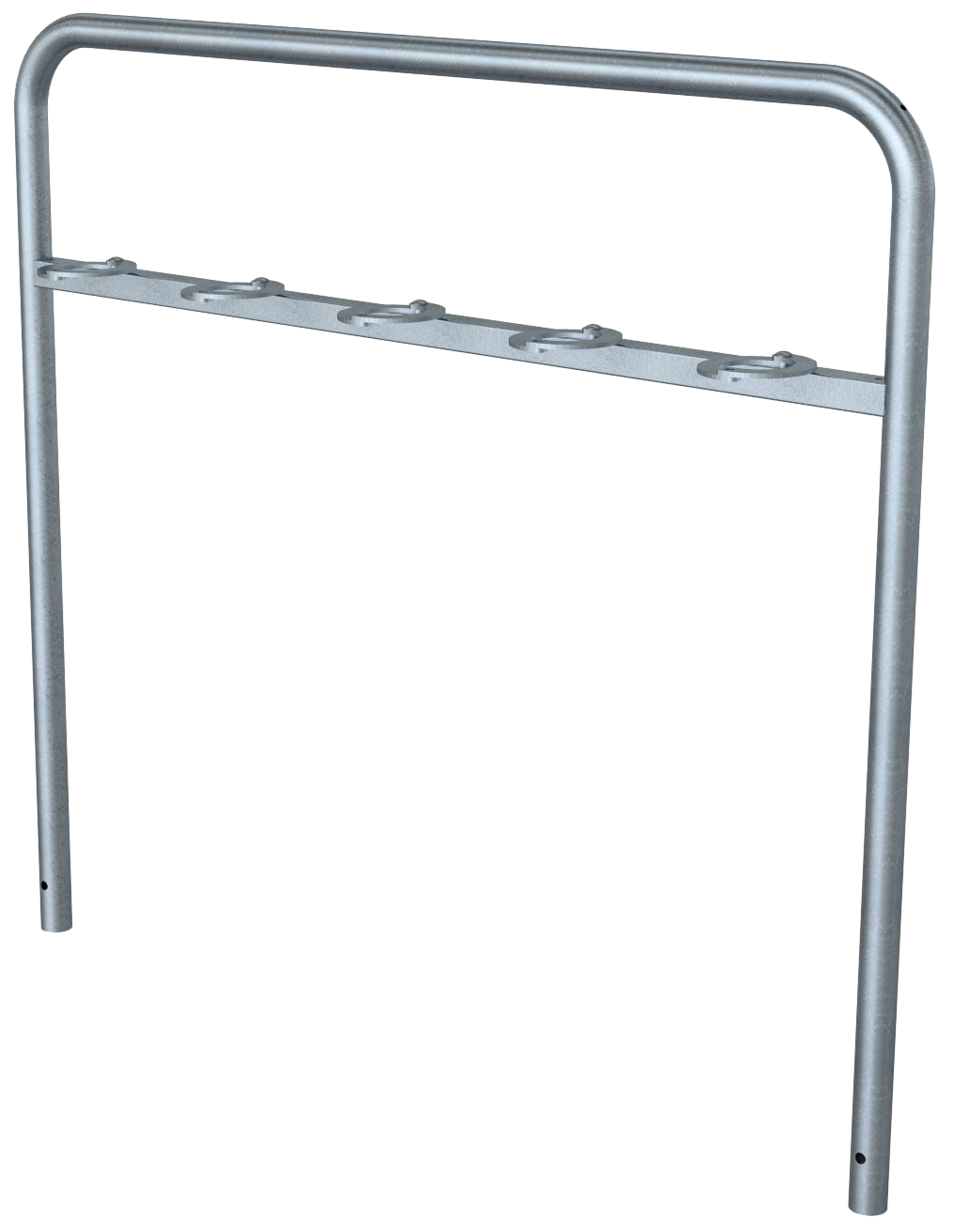 Scooter - Reihenparker - Bügel mit verschließbaren Halteringen für Vorhangschloss, ca. 500 mm Überflur Bügel aus Stahlrohr Ø 48 mm Gesamtbreite 1500 mm für 5 Einstellplätze Gesamthöhe Überflur: ca. 1000 mm feuerverzinkt, zum Einbetonieren