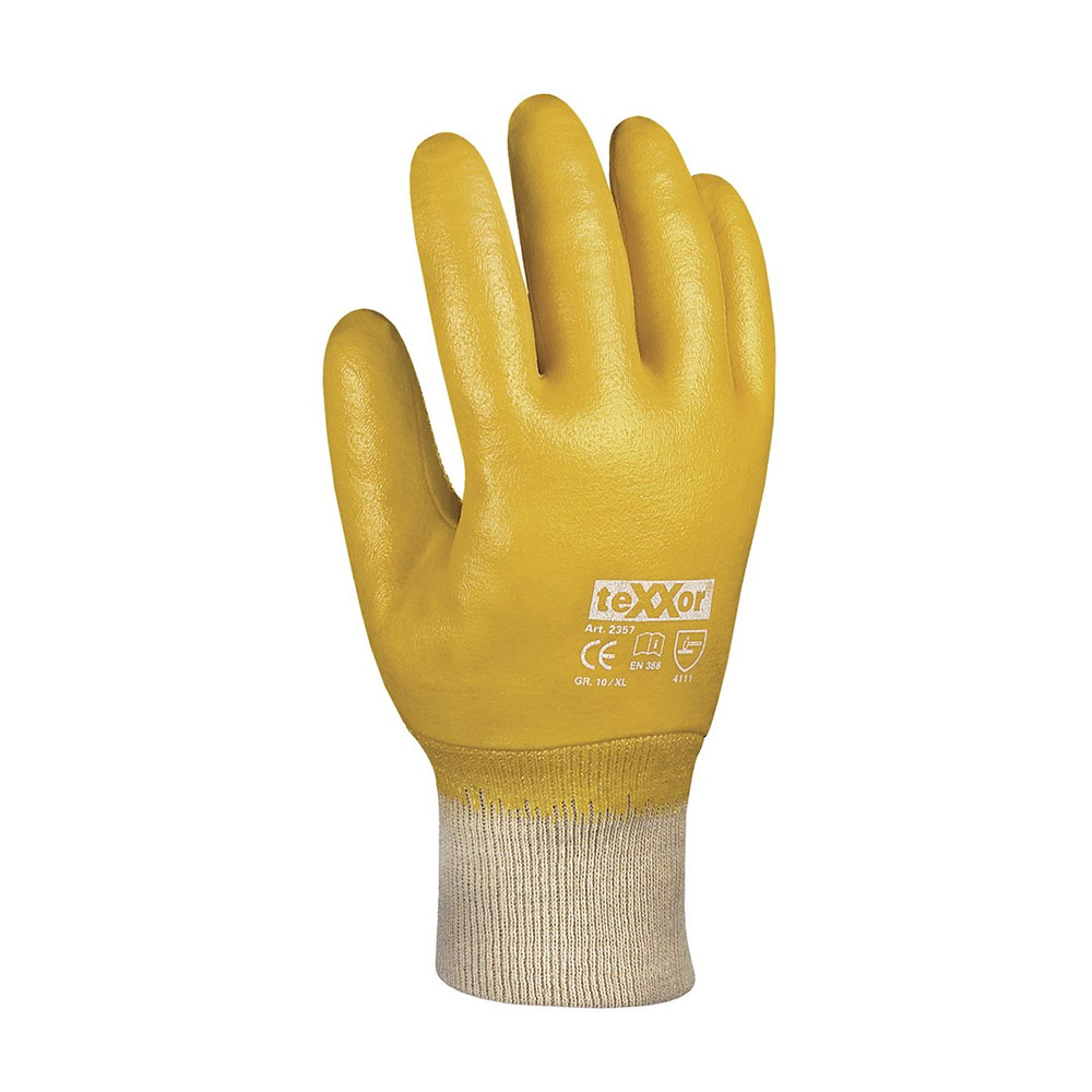 Der Nitril-Schutzhandschuh 3400V/2357 in Gelb ist vollbeschichtet und bietet hohe Abriebfestigkeit sowie Öl- und Fettabweisung. Ideal für Montagearbeiten, ist er aus robustem Nitril gefertigt und hat eine Baumwollauskleidung für zusätzlichen Tragekomfort. Mit einem kurzen Strickbund sorgt er für einen sicheren Sitz. Die Handschuhe sind 210-265 mm lang und entsprechen der Norm EN 388:2016 (4111X), wodurch sie optimalen Schutz bei mechanischen Arbeiten gewährleisten. Perfekt für professionelle Anwendungen, bieten diese Handschuhe zuverlässigen Schutz und Langlebigkeit.