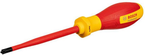 Schrauber VDE-Schraubendreher SL/PH2x125 · Professionelle Handwerker brauchen Werkzeuge · die leicht anzuwenden sind und allen gesetzlichen Vorgaben entsprechen. Mit dem Bosch Professional VDE-Schraubendreher SL/PH2x125 lassen sich Schrauben auch bei unerwartetem Kontakt mit stromführenden Teilen anziehen und lösen. Dieses normgerechte Werkzeug ist mit thermoplastischem Elastomer (TPE) isoliert. Es wurde bis zu 10.000 Volt geprüft und bis 1.000 Volt VDE-zertifiziert gemäß DIN EN/IEC 60900. Unser VDE-Schraubendreher ist präzise und langlebig. sein schmaler Schaft und seine robuste Spitze sorgen für Passgenauigkeit. Sein Softgrip und sein hoch ergonomisches Design sind handfreundlich und bequem bei der Arbeit. Die S2-Schraubendreherklinge verfügt über eine isolierende Schutzbeschichtung und der Handgriff ist mit TPE isoliert. Durch die Aufnahme von VDE-Handwerkzeugen in unser Bosch Professional-Sortiment sind nun alle erforderlichen Werkzeuge in zuverlässiger Bosch-Qualität erhältlich. Bosch Professional VDE-Schraubendreher sind rollsicher konstruiert · so dass sie am Arbeitsplatz nicht wegrollen. Darüber hinaus sind Profil und Größe an mehreren Positionen deutlich auf dem Griff sichtbar. Hängeschild Weitere technische Eigenschaften: · Dünne Klingenisolierung: ja · Ergonomischer Griff: ja · Gewicht: 0,107kg · Handgriffdurchmesser: 38mm · Klingendurchmesser: 6mm · Maximalspannung: 1000V · Softgriff: ja · VDE: ja · Wegrollsicheres Design: ja · Werkstoff: S2 · Werkzeugabmessungen (Breite): 39mm · Werkzeugabmessungen (Höhe): 39mm · Werkzeugfinder: ja