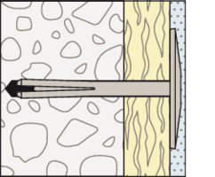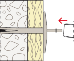 - Durch das Eintreiben des Nagels in den Dübelschaft verspreizt sich der DIPK im Verankerungsgrund.