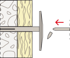 - In Vollbaustoffen muss der GFK- Nagel an der Sollbruchstelle gekürzt werden.