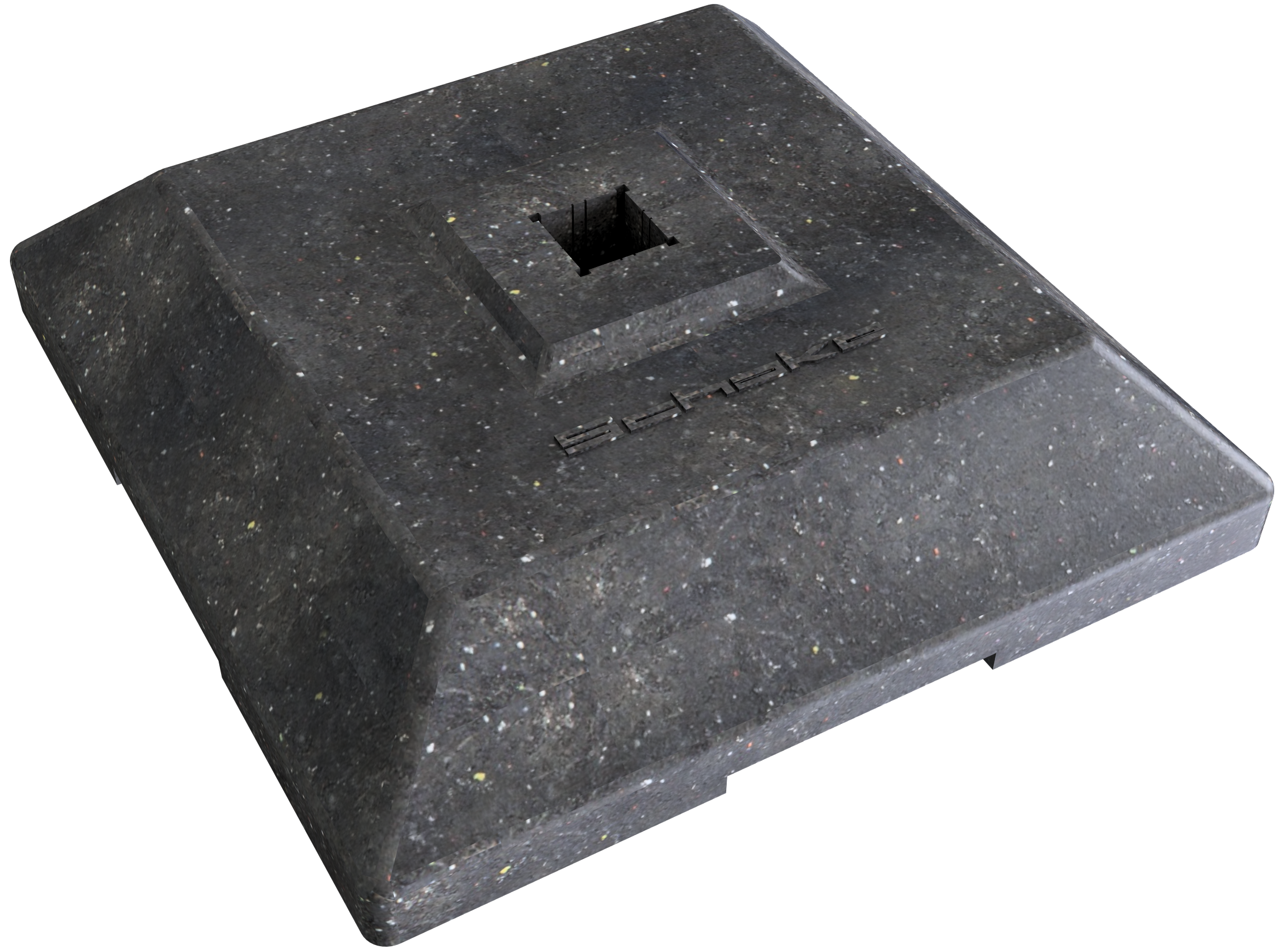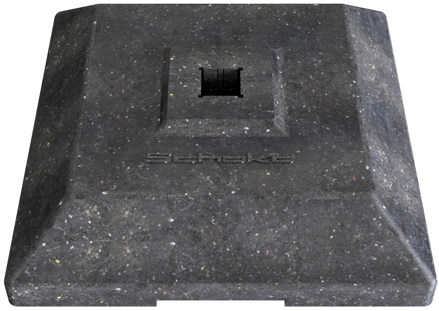 Bakenständerfußplatte 12 kg, zum Aufstellen von Baken, aus Kunststoffrecycling hergestellt, Abmaße: Breite: 400 mm, Länge: 400 mm, Höhe: 100 mm, mit Einstecktasche 40 mm x 40 mm