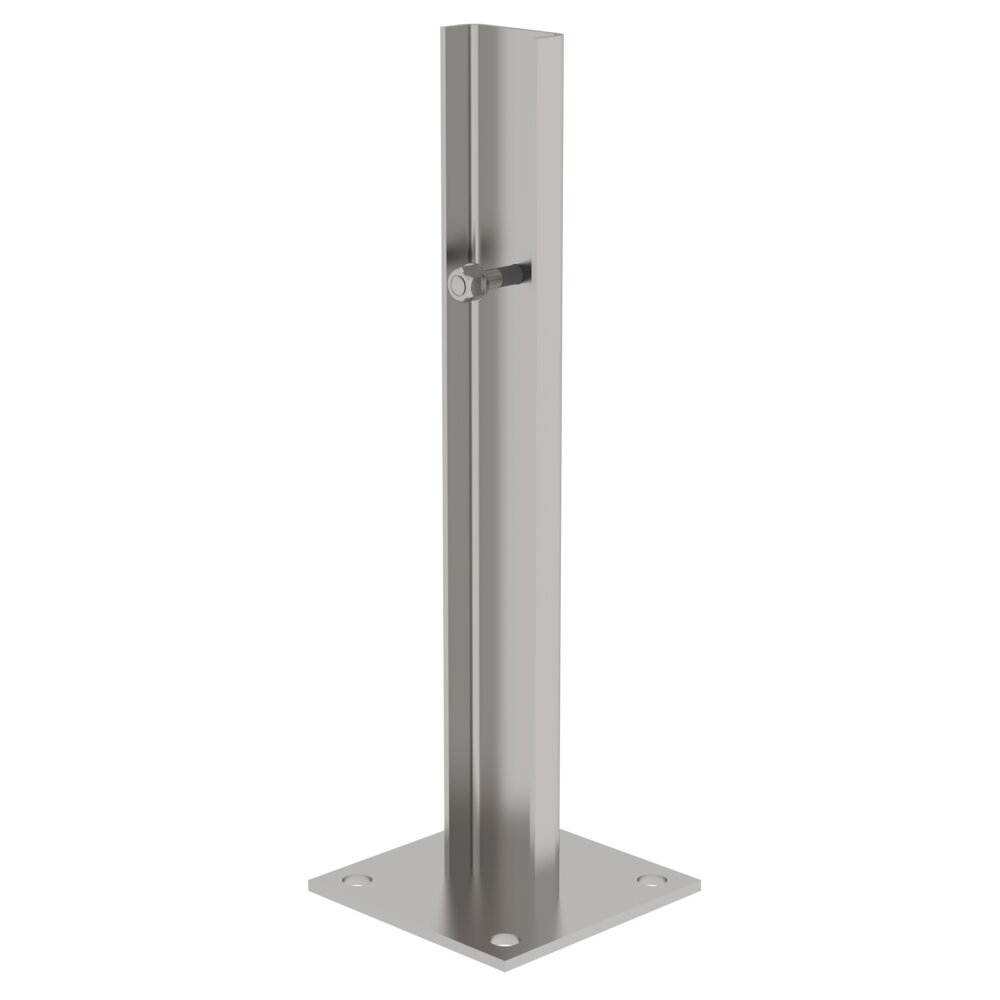 120 x 120 mm · zur Bodenbefestigung der Steigleiter Bohrung: Ø13 mm Neu: Länge 370 mm · kann bei Bedarf bauseits gekürzt werden