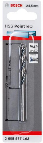 Bosch Metallspiralbohrer PointTeQ DIN388 Arbeits-L.47mm D.4,5mm Typ N