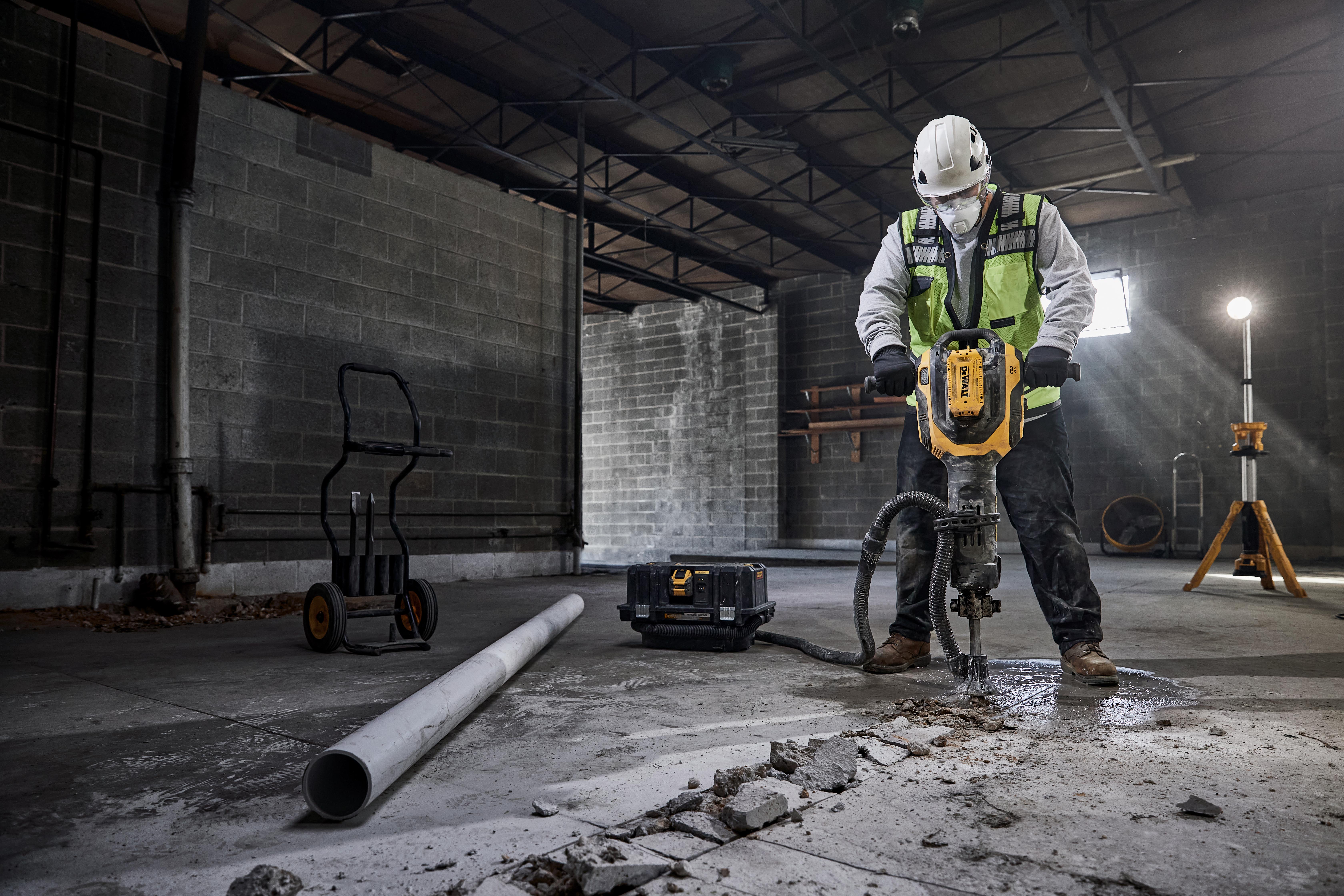 Das DEWALT 54 VOLT XR FLEXVOLT Maschinen-Sortiment bietet Leistung für die schwersten Anwendungen - ohne Kabel!Innovative, bürstenlose Motor-Technologie - höhere Leistung, kompaktere Abmessungen sowie längere Lebensdauer41 Joule Einzelschlagenergie: Ideal für schwerste Meißel und Abrissarbeiten in Mauerwerk und BetonPerform & Protect: Sicheres und ermüdungsarmes Arbeiten bei geringen Vibrationen durch Anti-Vibrations-System AVC und federgelagerten, von der Maschine entkoppelten HandgriffAbnehmbare Seitengriffe für einfacheren Transport und Arbeiten in sehr beengten VerhältnissenOptimierte 28mm HEX-Aufnahme: Bessere Übersicht beim Arbeiten aufgrund kompakterer BauformWireless Tool Control (WTC) für automatisches, kabelloses Einschalten eines Saugers beim Start der Maschine