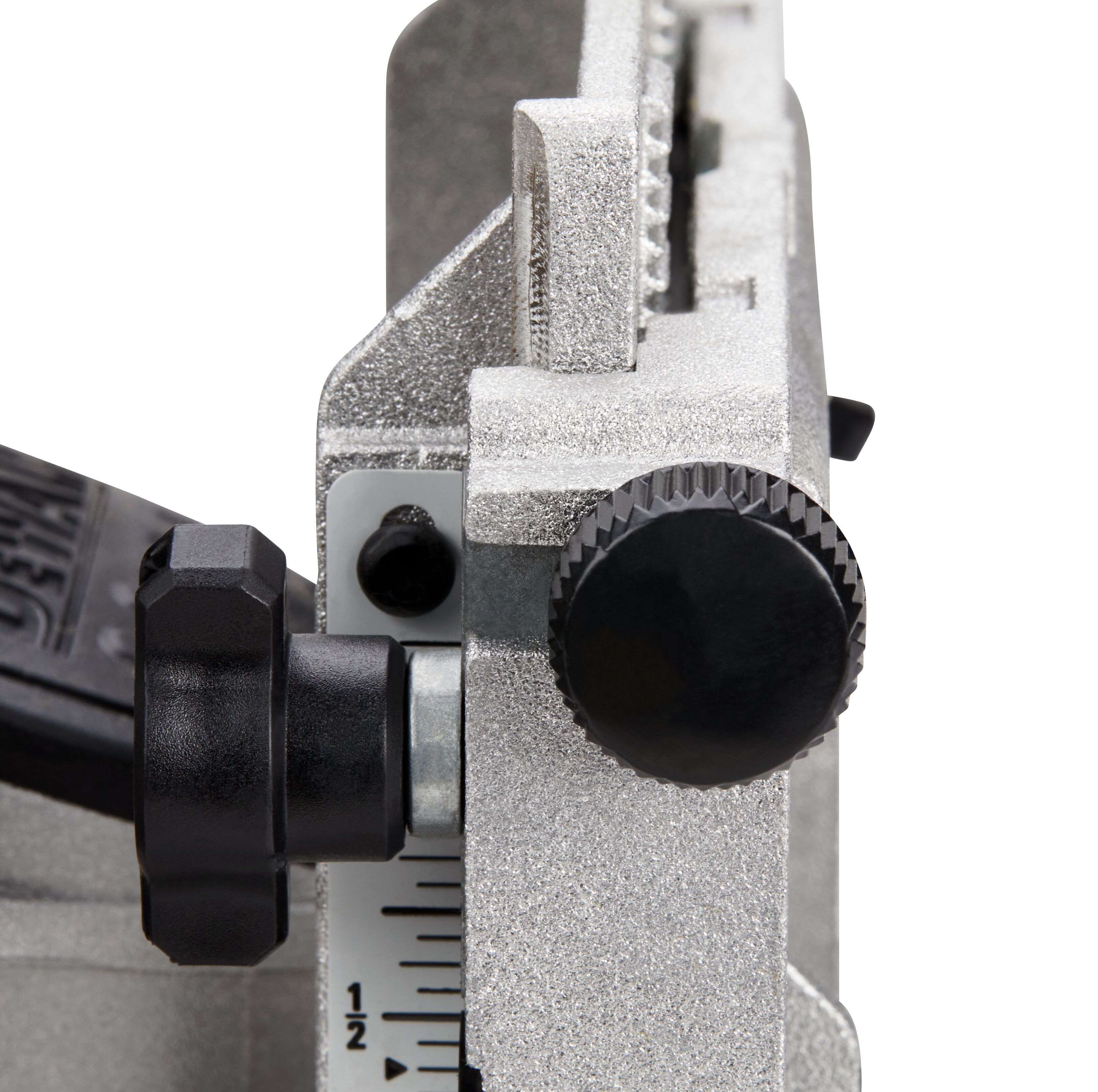 Innovative, bürstenlose Motor-Technologie - höhere Leistung, kompaktere Abmessungen sowie längere LebensdauerPräzise Zahnstangenführung garantiert exakte, vertikale Justierung und Ausrichtung des ParallelanschlagesEinstellbare Fixrasten für Lamellendübel 0, 10 & 20 mm und maximale Frästiefe, sowie Feinjustierung für höchste GenauigkeitHöhenverstellbarer und von 0° bis 90° justierbarer GehrungsanschlagVersenkbare Anti-Rutschvorrichtung, achtfache Anrissmarkierung und Anschlag mit Sichtfenster für präzises ArbeitenSpindelarretierung für einfachen FräserwechselAir-Lock Adapter für staubarmes ArbeitenSerienmäßig in T STAK-Box und als Basistype (ohne Akkus und Ladegerät) optimal geeignet bei bereits vorhandenen 18 Volt oder 54 Volt XR FLEXVOLT-Akkus oder für das DEWALT Akku Plus-System