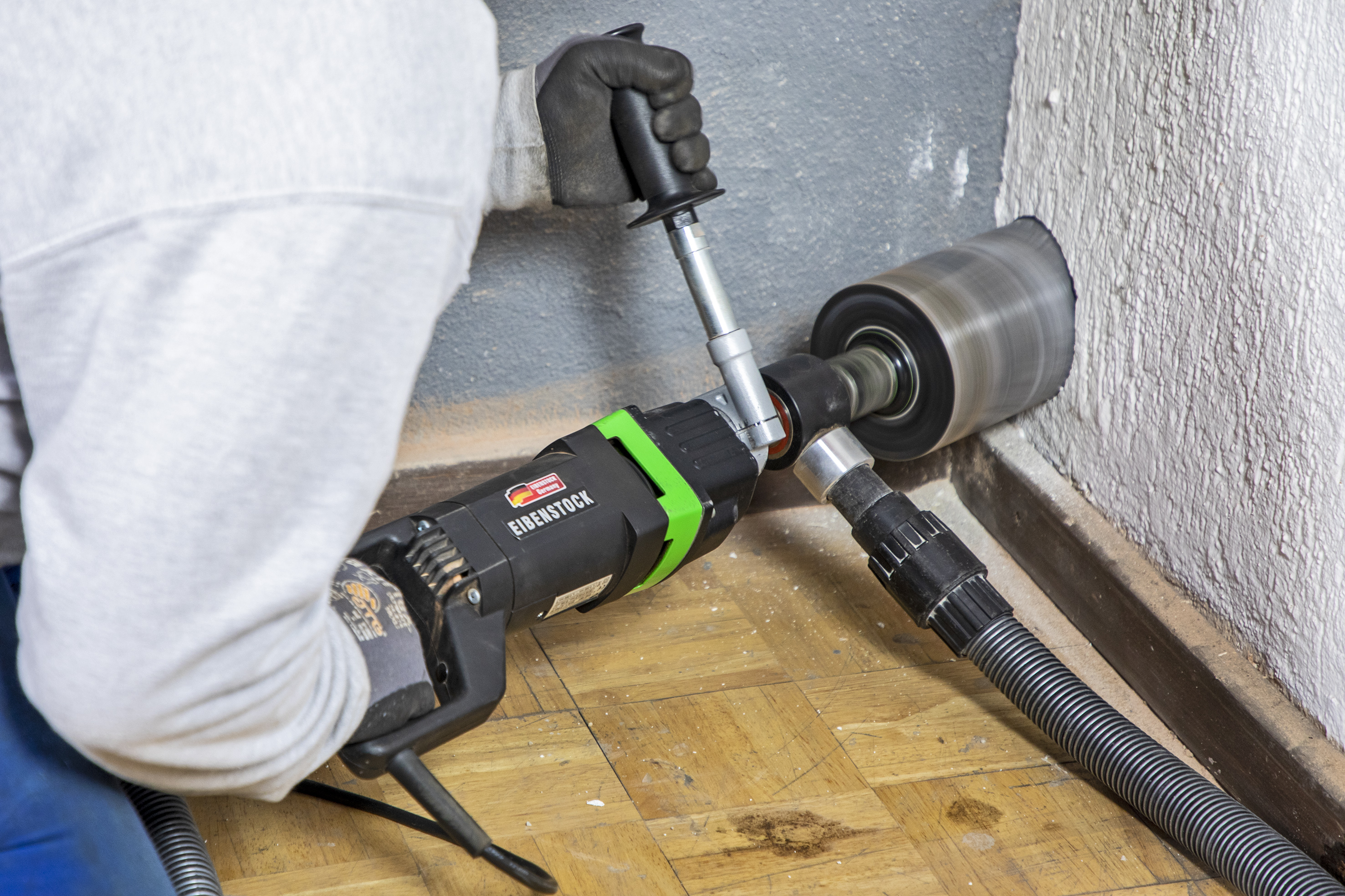- Trockenbohren großer Bohrdurchmesser bis 250 mm in Kalksandstein, Mauerwerk, Klinker, Ziegel und anderen abrasiven Materialien sowie Keramik