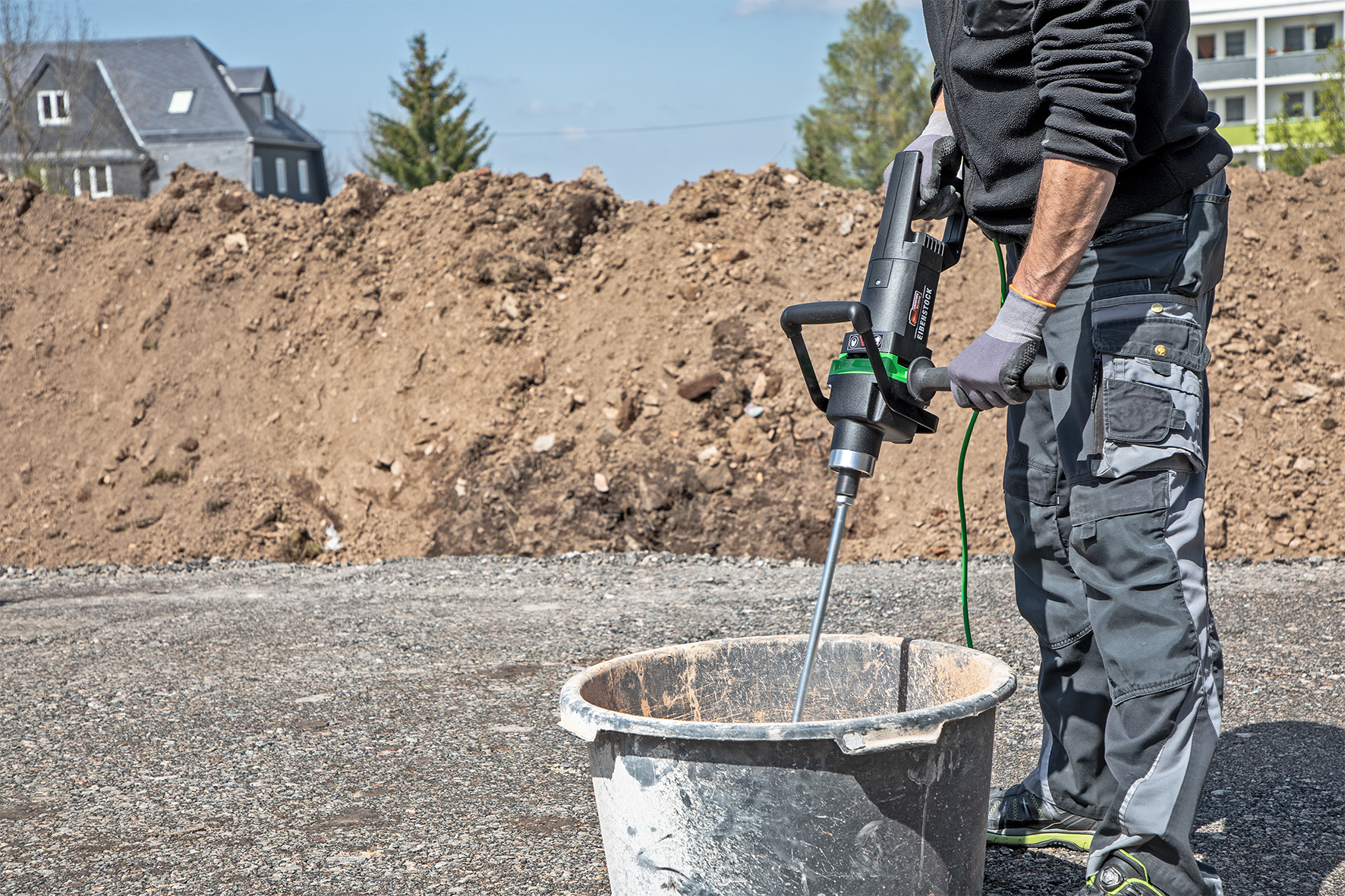 - Mischen von Baustoffen mit hoher Viskosität, z.B. Spachtel- und Ausgleichsmassen, Fliesenkleber, Fertigmörtel, Fertigputz, Estrich, Epoxydharze, Dichtungsmassen, Granulate