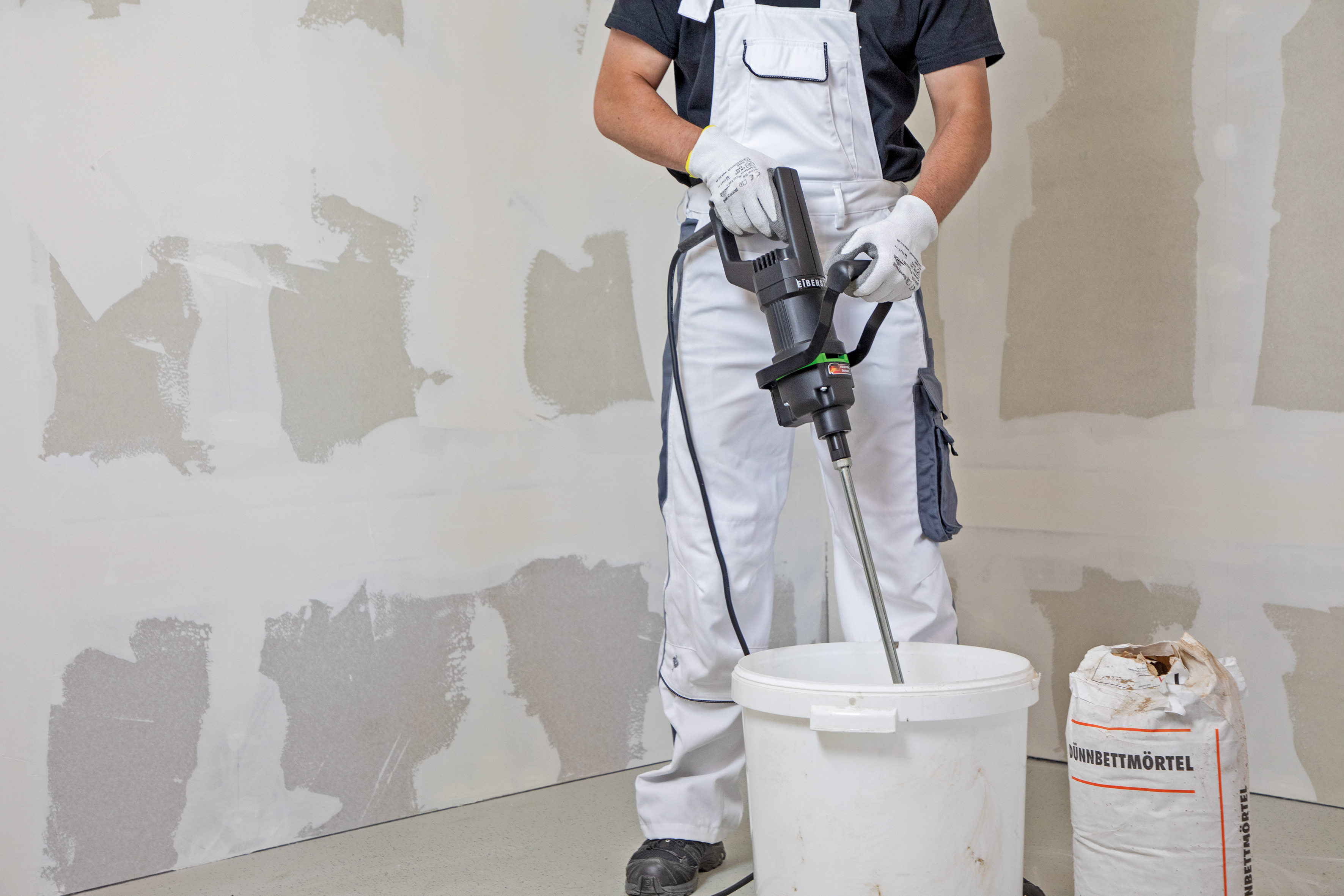 - Mischen von Baustoffen mit niedriger und mittlerer Viskosität, z.B. Farbe, Leim, Spachtel- und Ausgleichsmassen, Fliesenkleber, Fertigmörtel