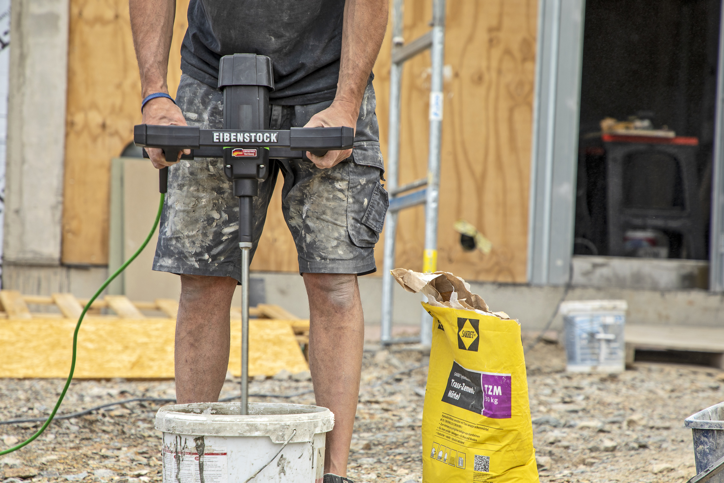 Anwendung: Mischen im Rechtslauf von höchstviskosen und steifen Materialien, z.B. Fliesenkleber, Fertigmörtel, -putz, Estrich, Epoxydharze, Dichtungsmassen, Granulate, Mehrkomponentenmaterialien, Beschichtungen Mischen im Linkslauf von Materialien mit niedriger und mittlerer Viskosität, z.B. Farbe, Leim, Spachtel- und Ausgleichsmassen Trockenbau, Fliesenleger, Maler, Stuckateure, Hoch- und Tiefbau, Galabau, FußbodensaniererMerkmale: Rechts-/Linkslauf – zwei Mischwirkungen durch einfaches Umschalten Zwei gegenläufige Rührquirle – kein Rückdrehmoment, leichte Handhabung, Kraft- und Zeitersparnis staubgeschützter Schalter Sanftanlauf für spritzarmes Anrühren stufenlose Drehzahlvorwahl und Drehzahlkonstanthaltung