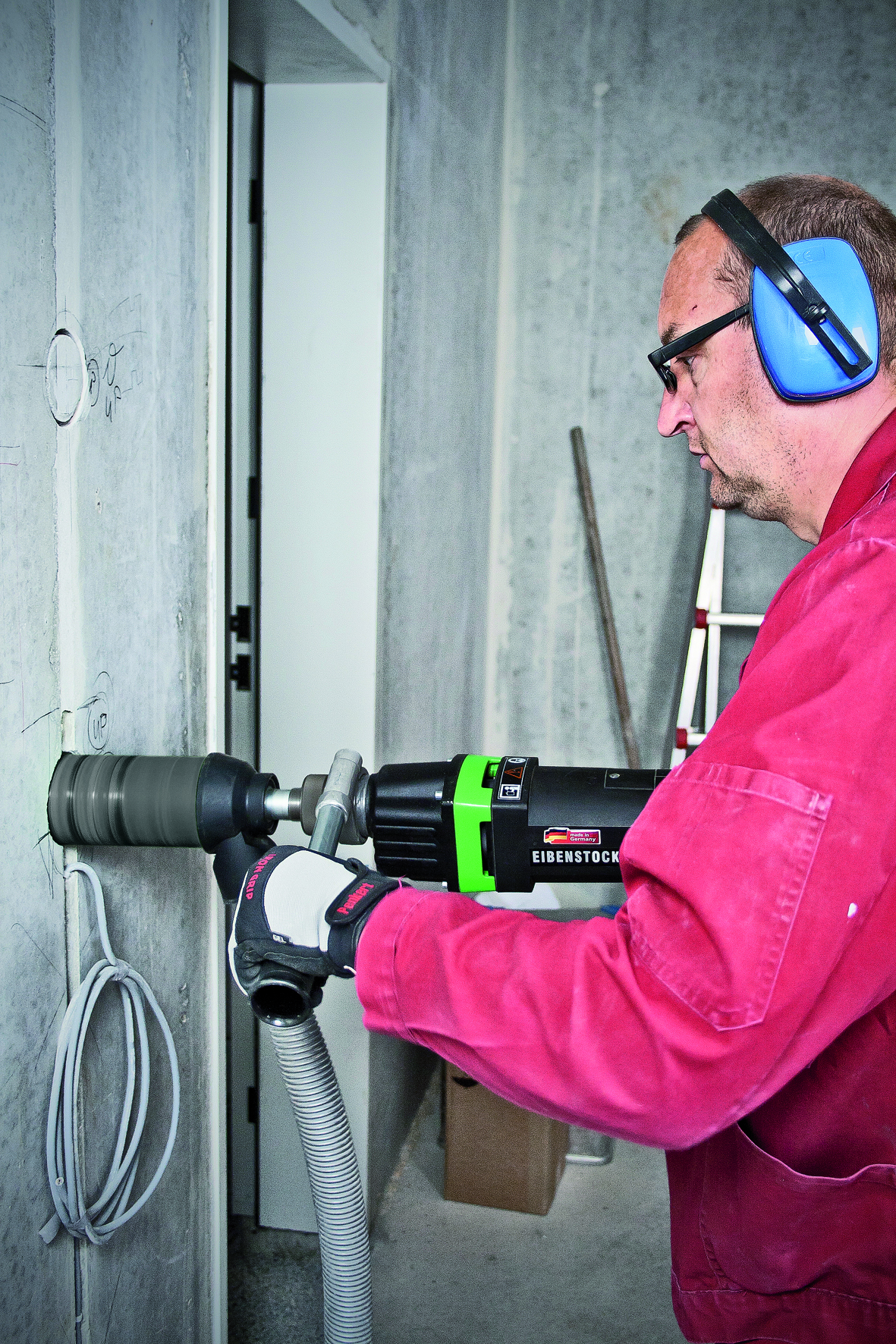 - Trockenbohren bis Ø 92 mm in besonders harte Materialien, z.B. hochverdichteten Kalksandstein, armierten Beton und anderen abrasiven Materialien mit hoher Arbeitsgeschwindigkeit
