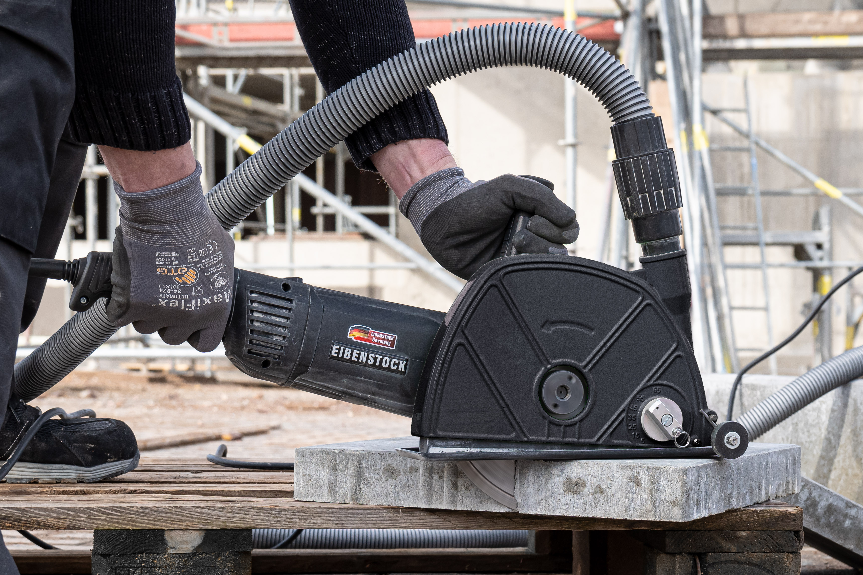 - Staubarmes Trennen von mineralischen Materialien wie Platten, Dachziegel, Betonborde und Natursteinplatten