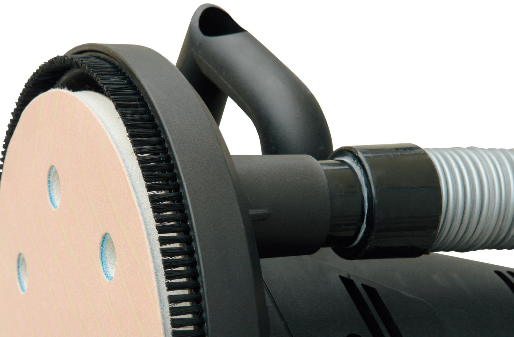 - Absaugung über Bürstenkranz und gelochtem Schleifteller