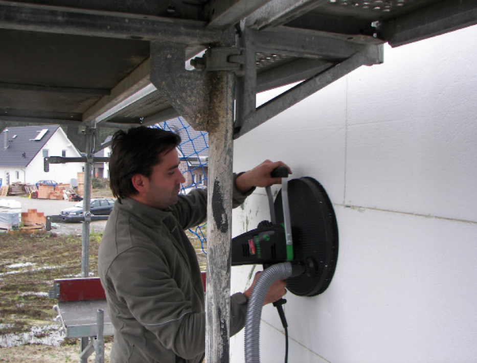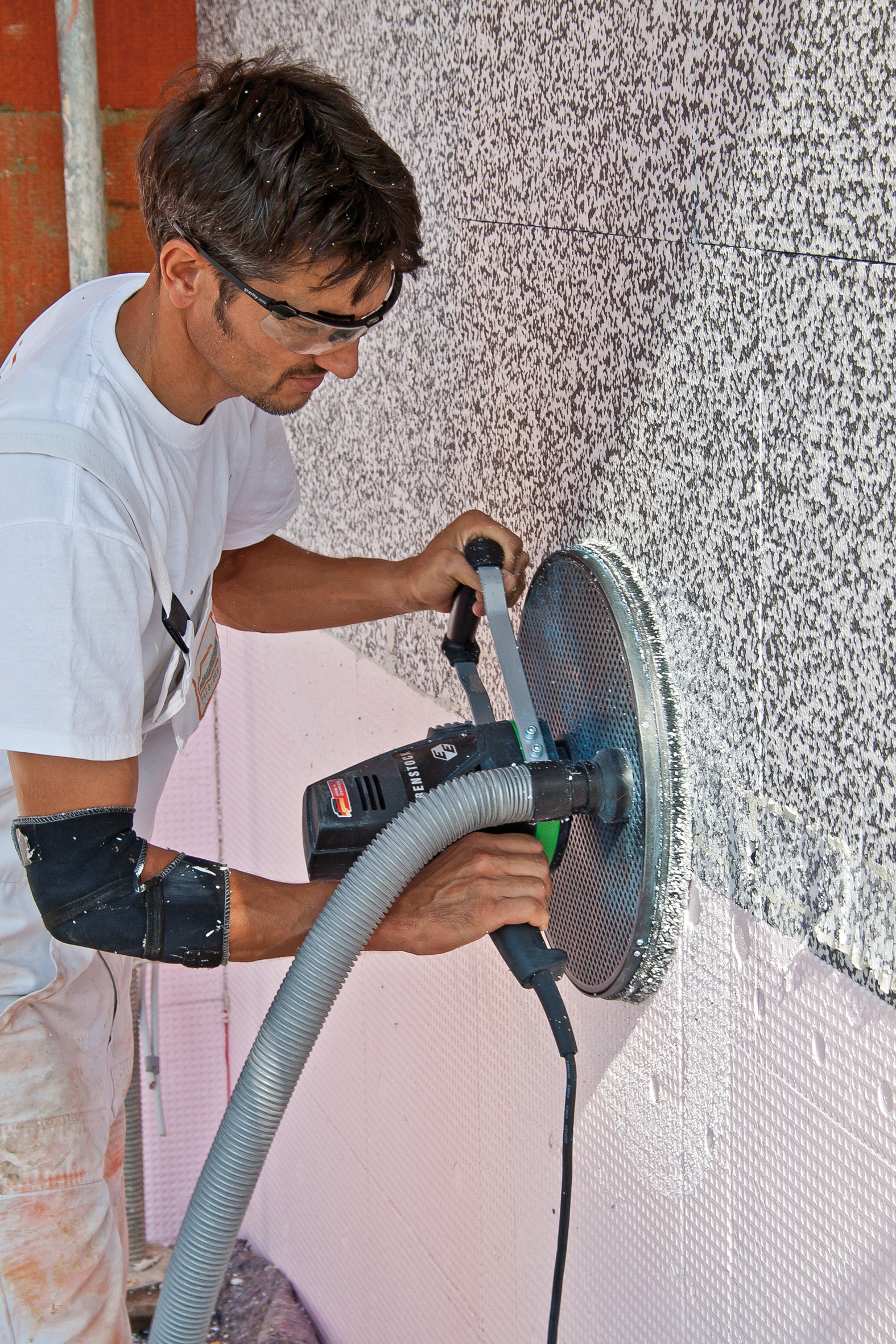 - Schleifen von Styropor und mineralischen Dämmplatten beim Vollwärmeschutz