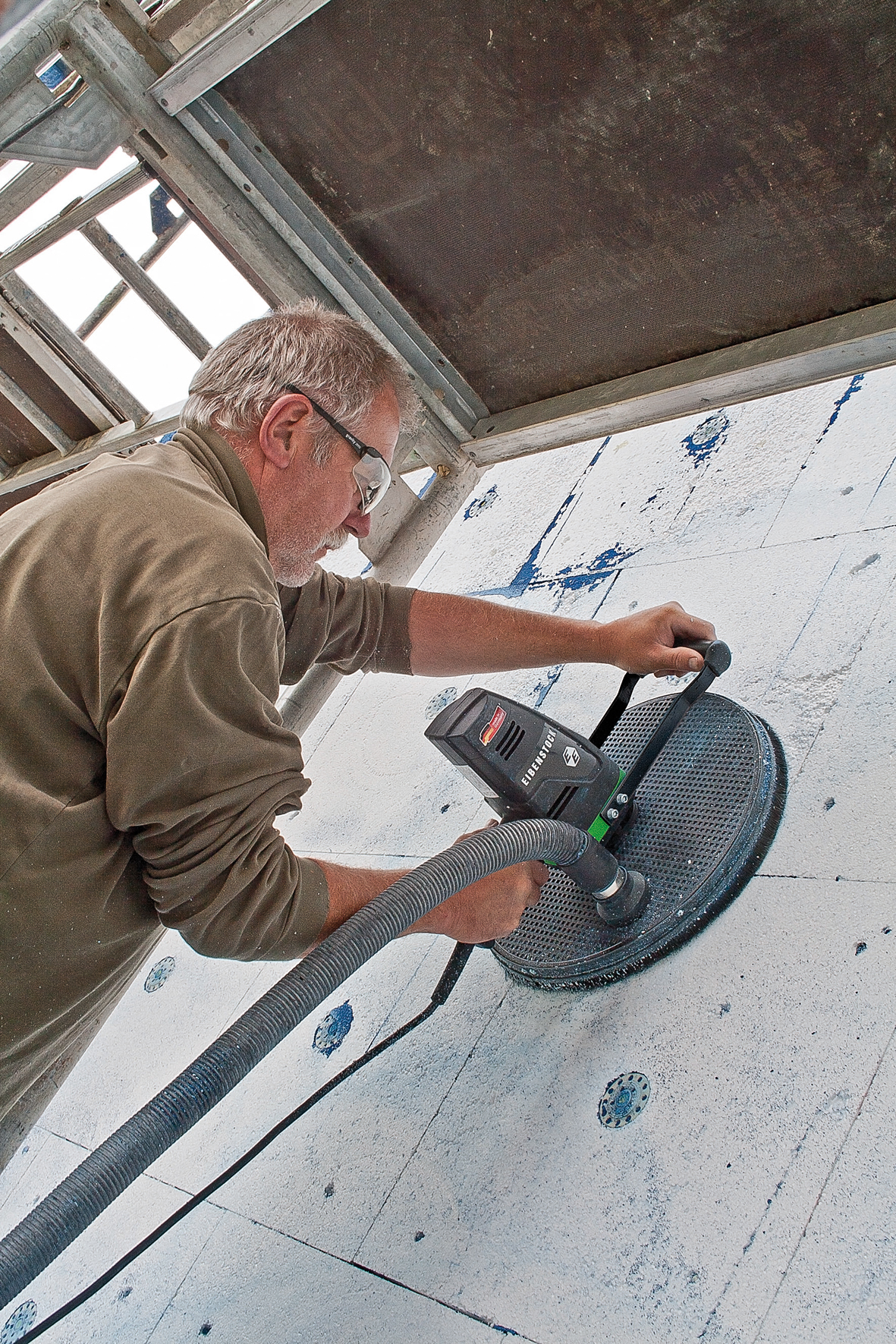 - verringert das Umherfliegen von Schleifteilchen, erspart aufwendiges Säubern der Baustelle