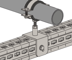- Die Verbindungselemente in U-Form lassen das Verbinden von Rohrschellen auf einfache Weise zu.