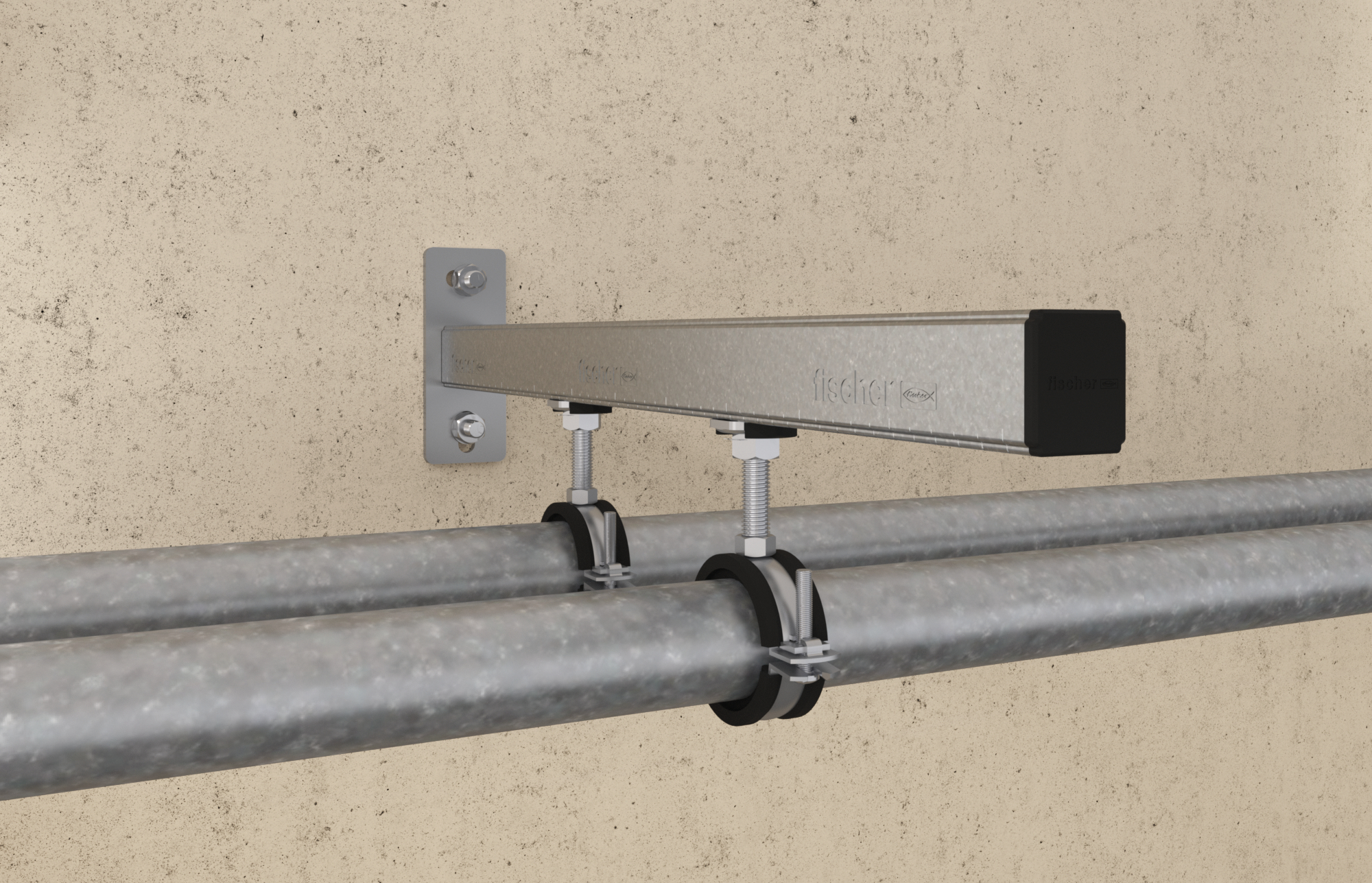 - Wirtschaftliche Montage von Einzelleitungen oder Rohrtrassen entlang der Wand.