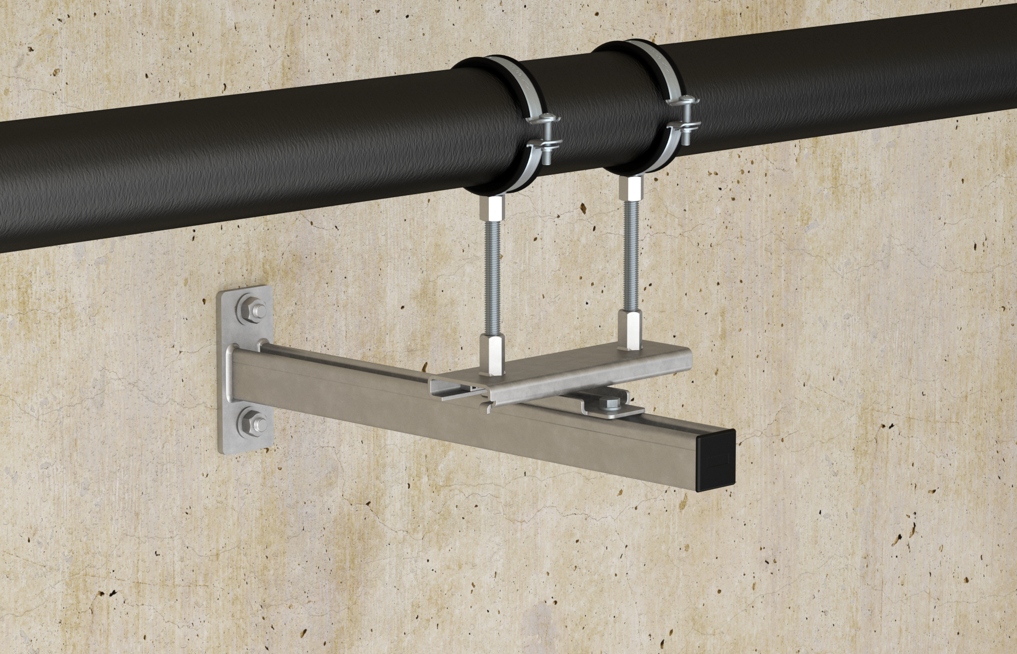 - Schnelle und einfache Montage von z.B. Rohrtrassen entlang der Wand.