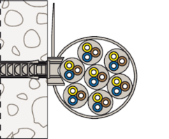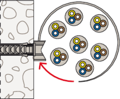 Mit dem fischer Befestigungsbinder FF können Kabel und Rohre gebündelt und mit seinem Sockel und zusätzlicher Schraube und Dübel einfach am Untergrund befestigt werden. Mit nur zwei Artikeln wird eine Bandbreite von Durchmesser 8 bis 63mm abgedeckt. Durch das Langloch im Sockel kann dieser bei Bedarf noch etwas ausgerichtet werden. Der Sockel lässt sich mit dem 2-Komponenten Kunststoffdübel DuoPower und Schraube ideal und sicher in jedem Untergrund befestigen.