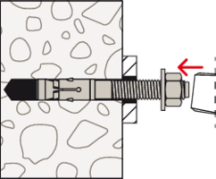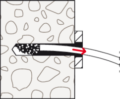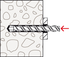 • Beim Anziehen der Mutter wird der Konusbolzen in den Spreizclip gezogen und verspannt diesen gegen die Bohrlochwand.