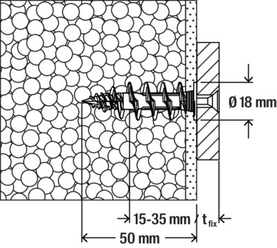 - Durch den minimalen Kopfdurchmesser ist der Dübelrand auch bei schmalen Anbauteilen nicht sichtbar.