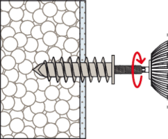 - Die Gewindespirale schneidet sich formschlüssig in die Dämmplatte.