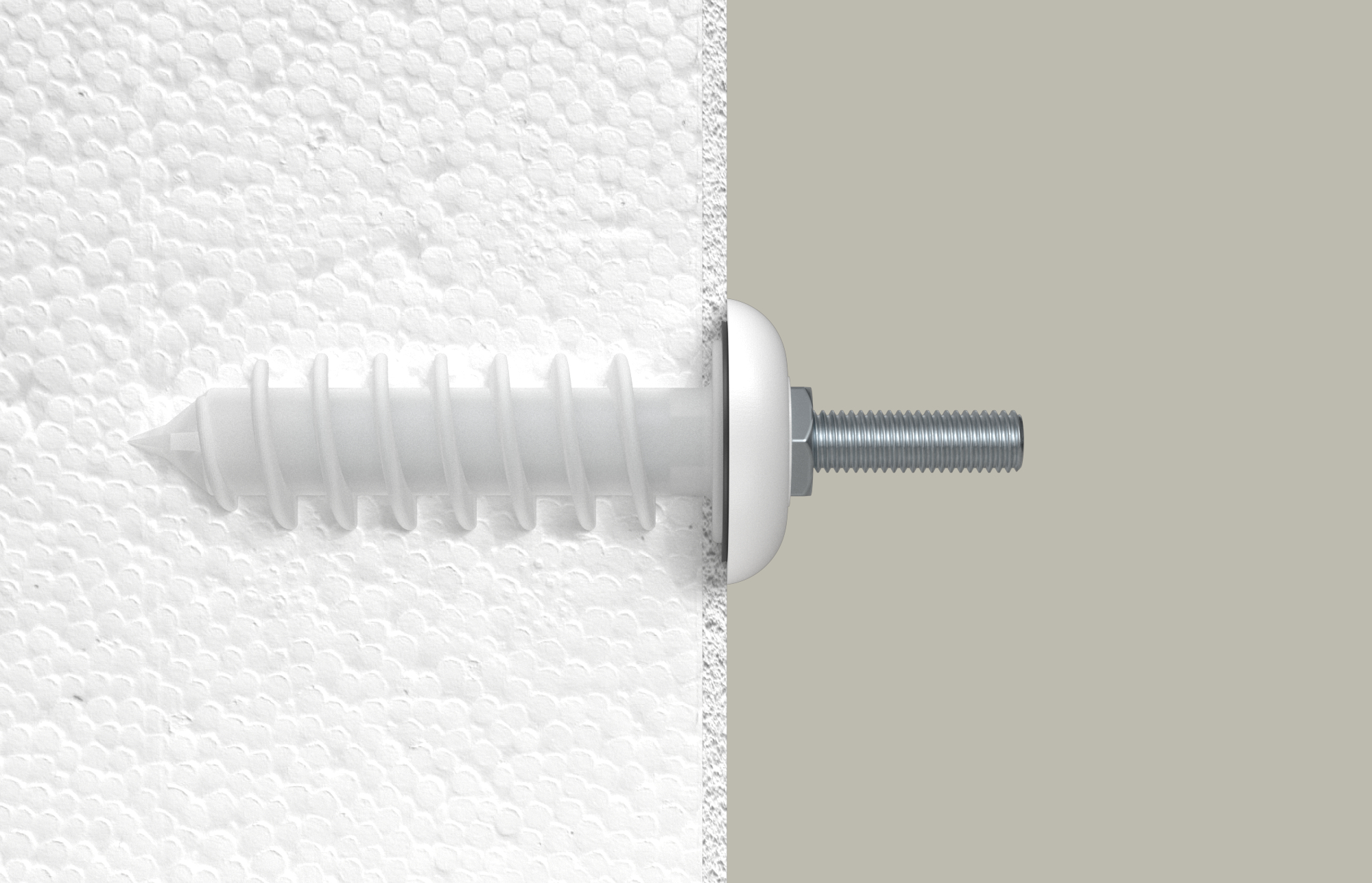 - Durch das Setzen des Dübels ausschließlich in der Dämmung können Anbauteile wärmebrückenfrei montiert werden. Der Dübel bietet eine energetisch optimierte Befestigung.