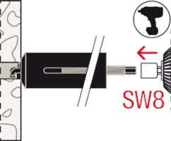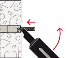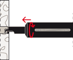 - Das Demontagewerkzeug wird auf den montierten Anker aufgesetzt und durch Drehung im Uhrzeigersinn ganz an den Untergrund angesetzt.