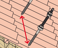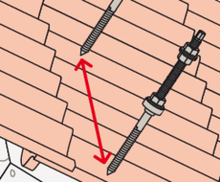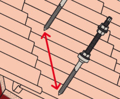 - Bestimmen Sie den Achsabstand der STSR-Stockschrauben in Abhängigkeit von den Schnee- und Windlasten vor Ort und der Dachneigung.