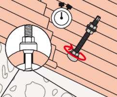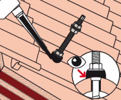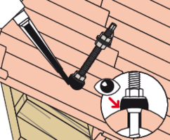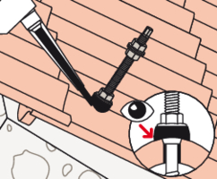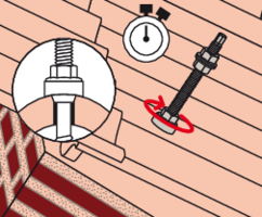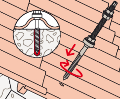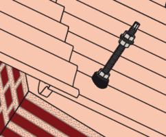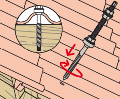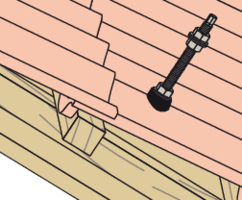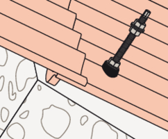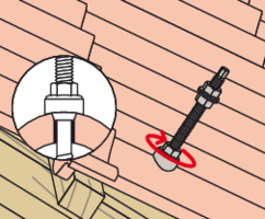 - Befestigen Sie die STSR-Stockschraube an der Holzkonstruktion. Das EPDM-Gummi liegt auf der Eindeckung auf.