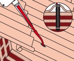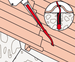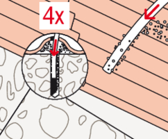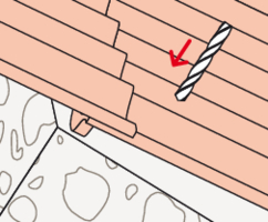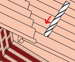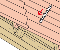 - Bohren Sie die Eindeckung mit 14 mm und die Holzunterkonstruktion mit 6 mm bzw. 8 mm vor.