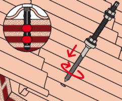 - Bestimmen Sie die Länge der STSR-Stockschraube in Abhängigkeit von der Dicke der tragenden Konstruktion.
