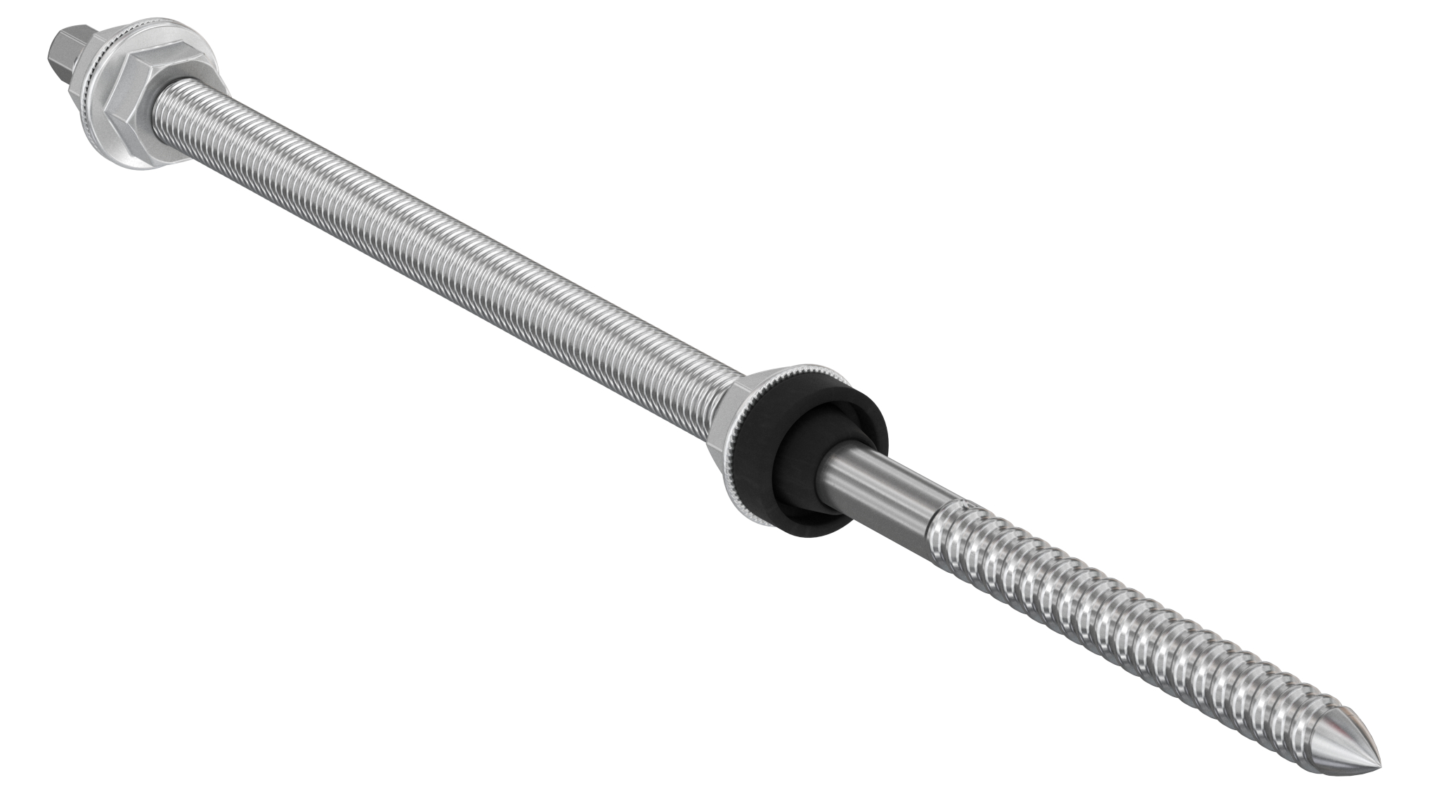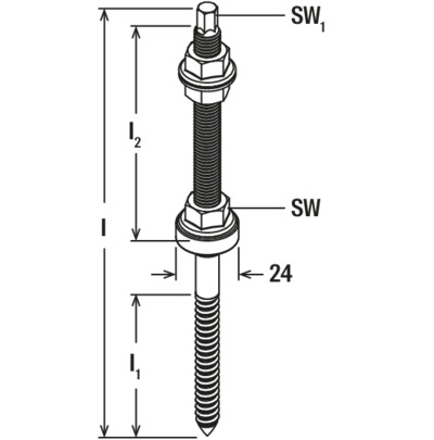 - Die STSR-Stockschraube wird vormontiert mit EPDM-Dichtung, Spannmutter und Mutternpaar für die Verbindung mit den MW- oder SSP-Halterungen geliefert.