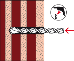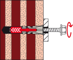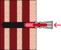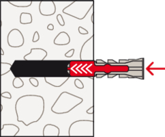 • Die ausgeprägte Mitdrehsicherung verhindert das Mitdrehen des Dübels.