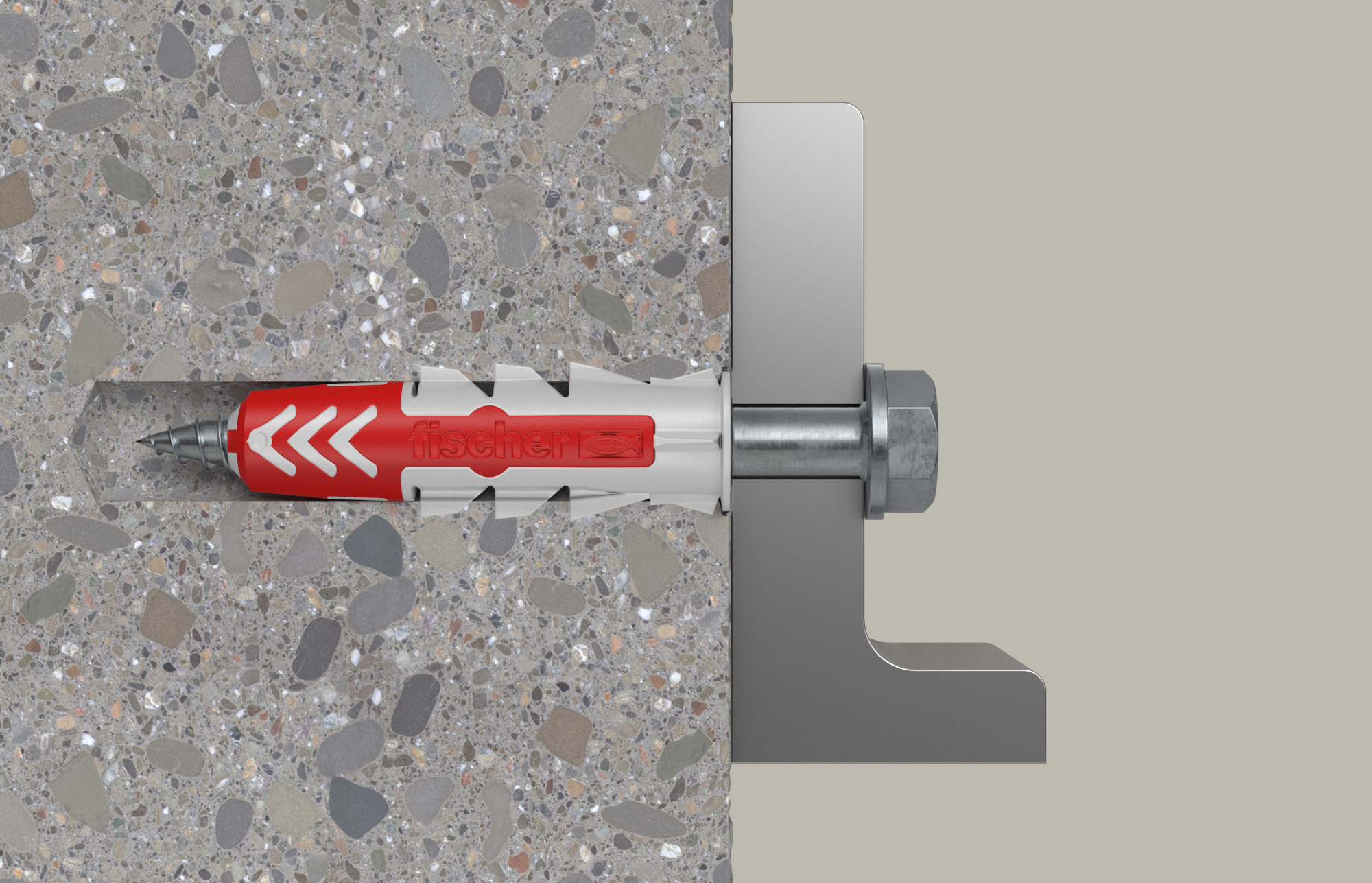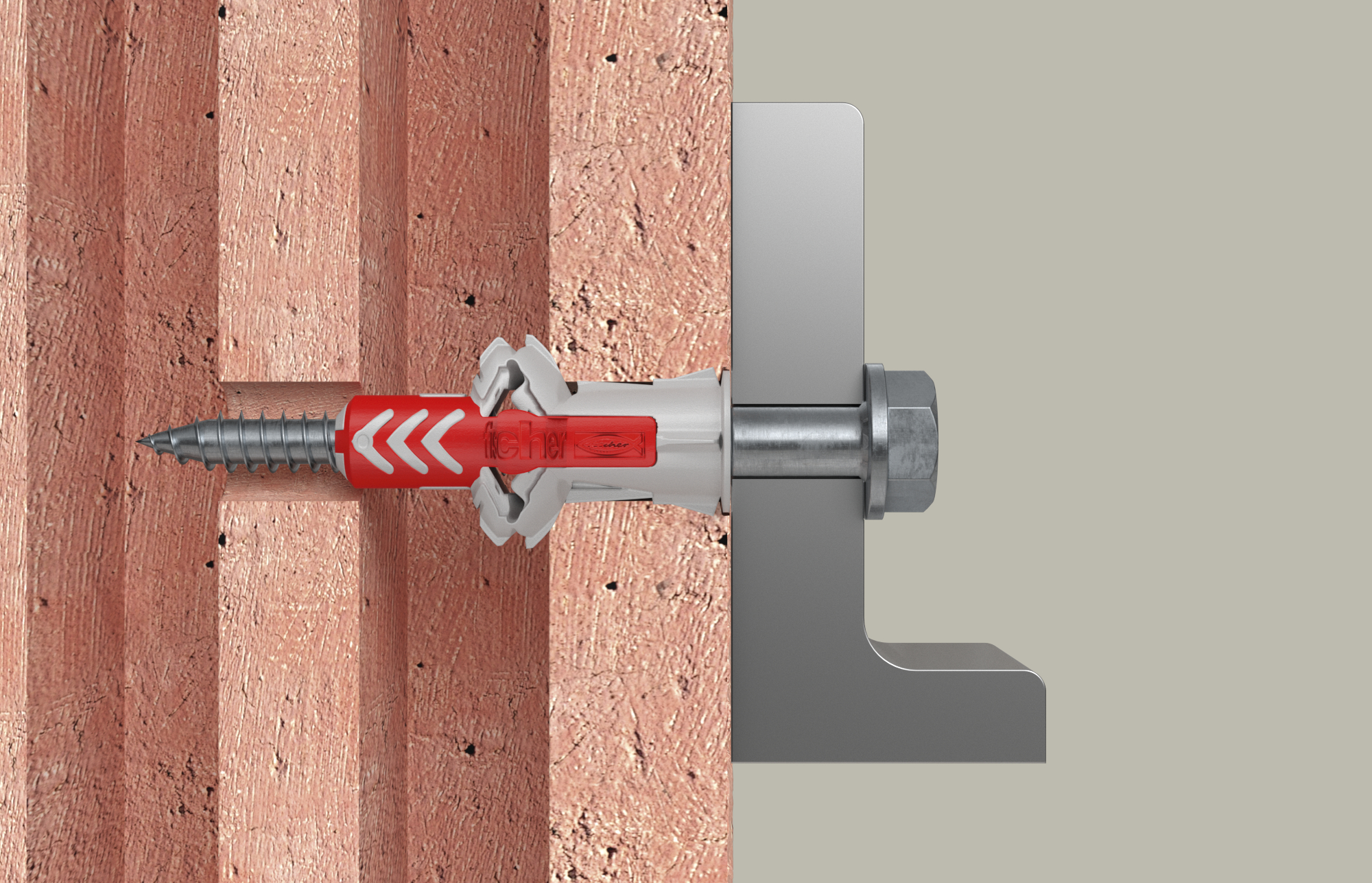 Der fischer Langschaftdübel DuoXpand mit zwei Verankerungstiefen ist mit der fischer Senkkopfschraube für Mehrfachbefestigungen von nichttragenden Systemen in Beton, Mauerwerk und Porenbeton zugelassen. Durch seine spezielle Lamellengeometrie und der Materialkombination verspreizt sich der Dübel optimal und materialschonend im jeweiligen Baustoff. Das Sortiment umfasst die Durchmesser 8 und 10 und Dübellängen bis 230 mm. Der DuoXpand mit der Senkkopfschraube ist besonders für die Befestigung von Holzkonstruktionen geeignet.Clevere Kombination aus Design und Material für materialschonenden Biss im Baustoff.Spreizelement mit zwei Verankerungstiefen für flexiblen Einsatz.Zugelassene Mehrfachbefestigung von nichttragenden Systemen in Beton und Mauerwerk.Seitliche Rippen verhindern Mitdrehen im Bohrloch für funktionssichere Montage.Vormontierte Sicherheitsschraube mit Senkkopf.G9Die abgestimmte Kombination aus Design und Material beißt sich perfekt in alle Baustoffe und ermöglicht den universellen Einsatz.Die spezielle Lamellengeometrie verspreizt sich materialschonend im jeweiligen Baustoff. Dies vermeidet Brüche in porösen Baustoffen und ermöglicht randnahe Verankerungen.Der graue Grundkörper aus hochwertigem Nylon bietet starken Halt, während die rote Materialkomponente für Flexibilität und optimales Aufspreizen sorgt.Die Europäische Technische Bewertung (ETA) für Mehrfachbefestigung von nichttragenden Systemen gewährleistet sicheren Halt in allen Baustoffklassen.Die vormontierte Sicherheitsschraube ist perfekt auf den Dübel abgestimmt und sorgt für Zeitersparnis bei der Montage.Der DuoXpand ist geeignet für die Durchsteckmontage.In Vollbaustoffen garantiert das abgestimmte Produktdesign eine gleichmäßige Lastverteilung in den Untergrund.Im Lochsteinmauerwerk spreizen die Lamellen am Steinsteg und bilden im Hohlraum einen Hinterschnitt aus. Die Dübelgeometrie gewährleistet eine materialschonende Krafteinleitung, somit werden poröse Steinstege nicht zerstört.Besonders geeignet für die Befestigung von Holzkonstruktionen.geeignet fürZugelassen für:Beton ≥ C12/15VollziegelKalksandvollsteinVollblock aus Leicht- und NormalbetonHochlochziegelKalksandlochsteinHohlblock aus LeichtbetonPorenbetonNaturstein mit dichtem GefügeVollgips-PlattenAnwendungFassaden-, Decken- und Dachunterkonstruktionen aus Holz oder MetallFensterTore und TürenGarderobenKüchenhängeschränkeKanthölzerBalkenTV-KonsolenWandbekleidungenMetallwinkelMetallhalterungenKabelkanäleKabelrinnen