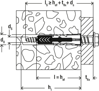 • Die erforderliche Schraubenlänge ergibt sich aus Dübellänge + Anbauteildicke + 1 x Schraubendurchmesser.
