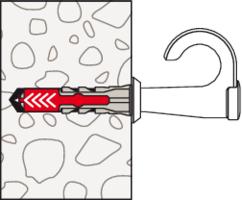 - Der Kunststoffhaken kann mit dem DuoPower oder ohne Dübel in Holz eingesetzt werden, wodurch eine Vielzahl von Baustoffen abgedeckt ist.
