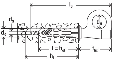 - Für eine einfachere Montage in Holz kann der Schaftbereich des Rund- und Ösenhakens abgebrochen werden.
