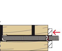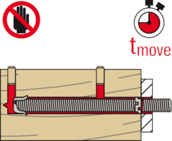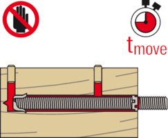 - Bei der Durchsteckmontage wird der Ringspalt zwischen Ankerstange und Anbauteil mit FIS EM Plus verfüllt.