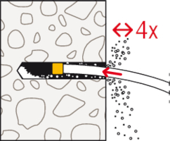 - Der Mörtel verklebt den Anker vollflächig mit der Bohrlochwand und dichtet das Bohrloch ab.