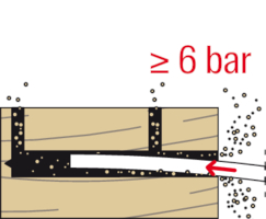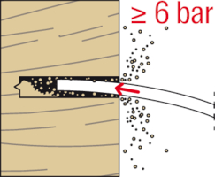 - Der Mörtel wird vom Bohrlochgrund her blasenfrei injiziert.