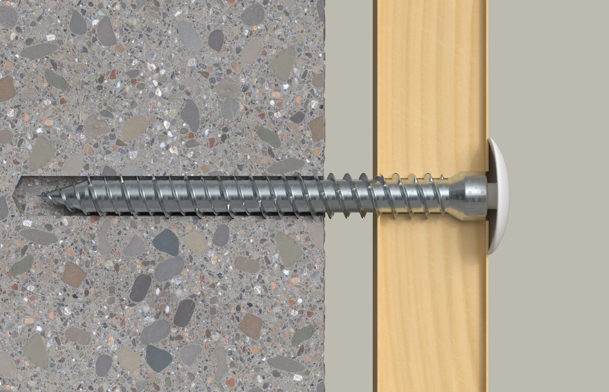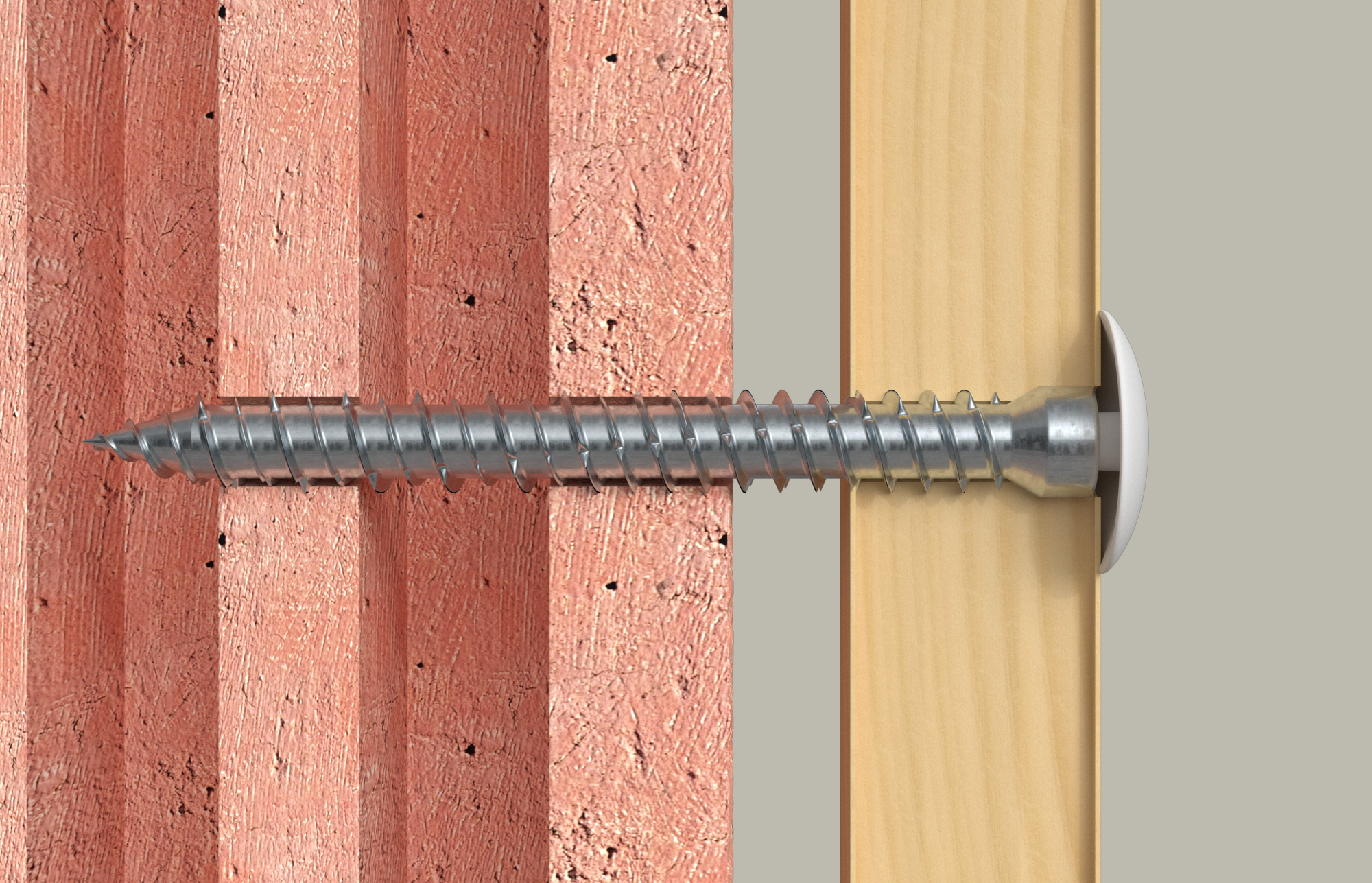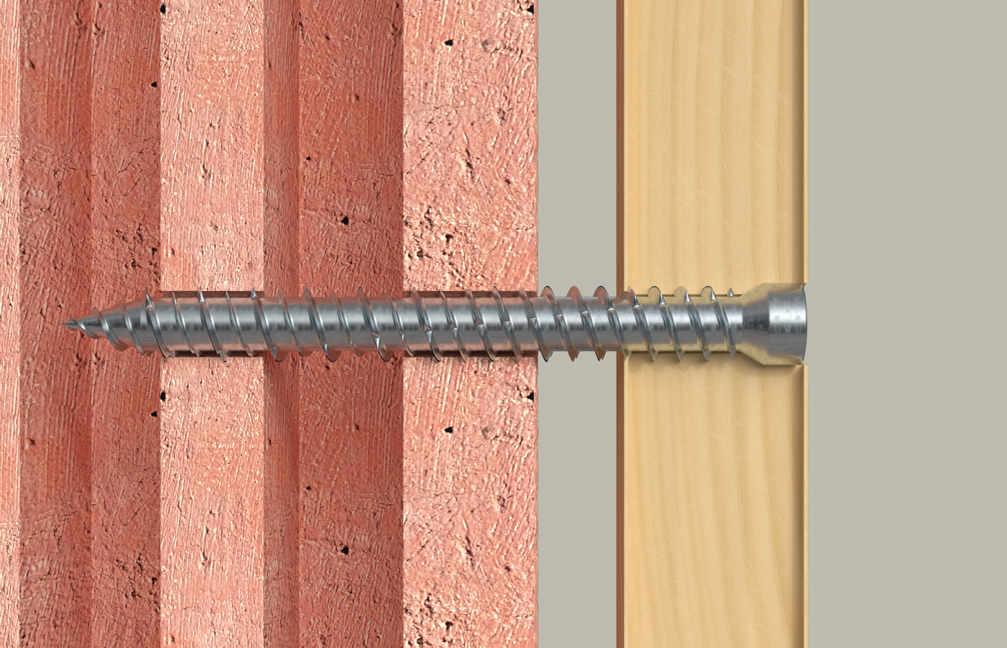 - Das Hoch-Tief-Gewinde an der Schraubenspitze sowie zusätzliche Fräsrippen reduzieren das Eindrehmoment und ermöglichen eine Kräfte schonende Montage.