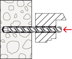 - Das durchgehende Gewinde ermöglicht eine zug- und spannungsfreie Befestigung des Rahmens am Untergrund.