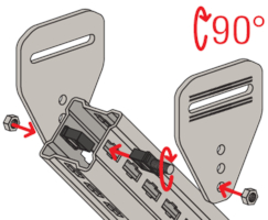 - Die Ausführung des variablen Verbinders FMVB P mit Langlöchern und Rasterung zur Aufnahme der Zahnplatte des Hammerkopf-Steckverbinders FMHB ermöglicht eine optimale Justage des abgestützten Profils für eine einfache und sichere Montage.