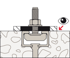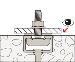 - FBC-S Hammerkopfschrauben können variabel in der geplanten Position der eingegossenen Ankerschiene eingestellt werden