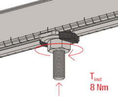 - Die ausgeprägte Verzahnung in der Schiebemutter ermöglicht die exakte und sichere Positionierung in den FLS-Montageschiene und erleichtert die Montage nachhaltig.
