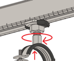 - FHS Clix ist geeignet, um Rohrschellen mit der Montageschiene zu verbinden.