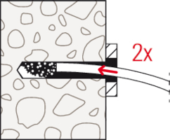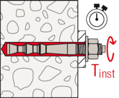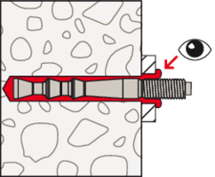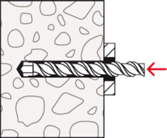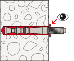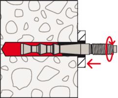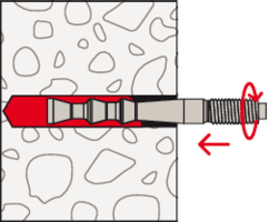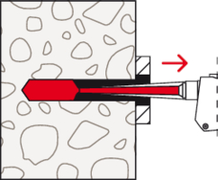 - Beim Anziehen der Sechskantmutter werden die Konen der Ankerstange in die Mörtelschale gezogen, die sich gegen die Bohrlochwand verspannt.
