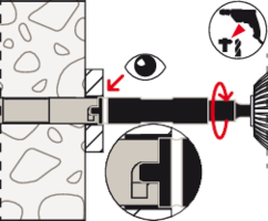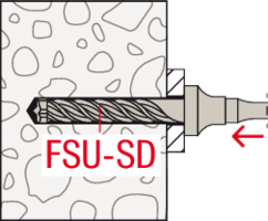 - Der Anker wird mit dem Setzwerkzeug FSU-ST in ein mit dem Bundbohrer FSU-SD erstelltes Bohrloch gesetzt.