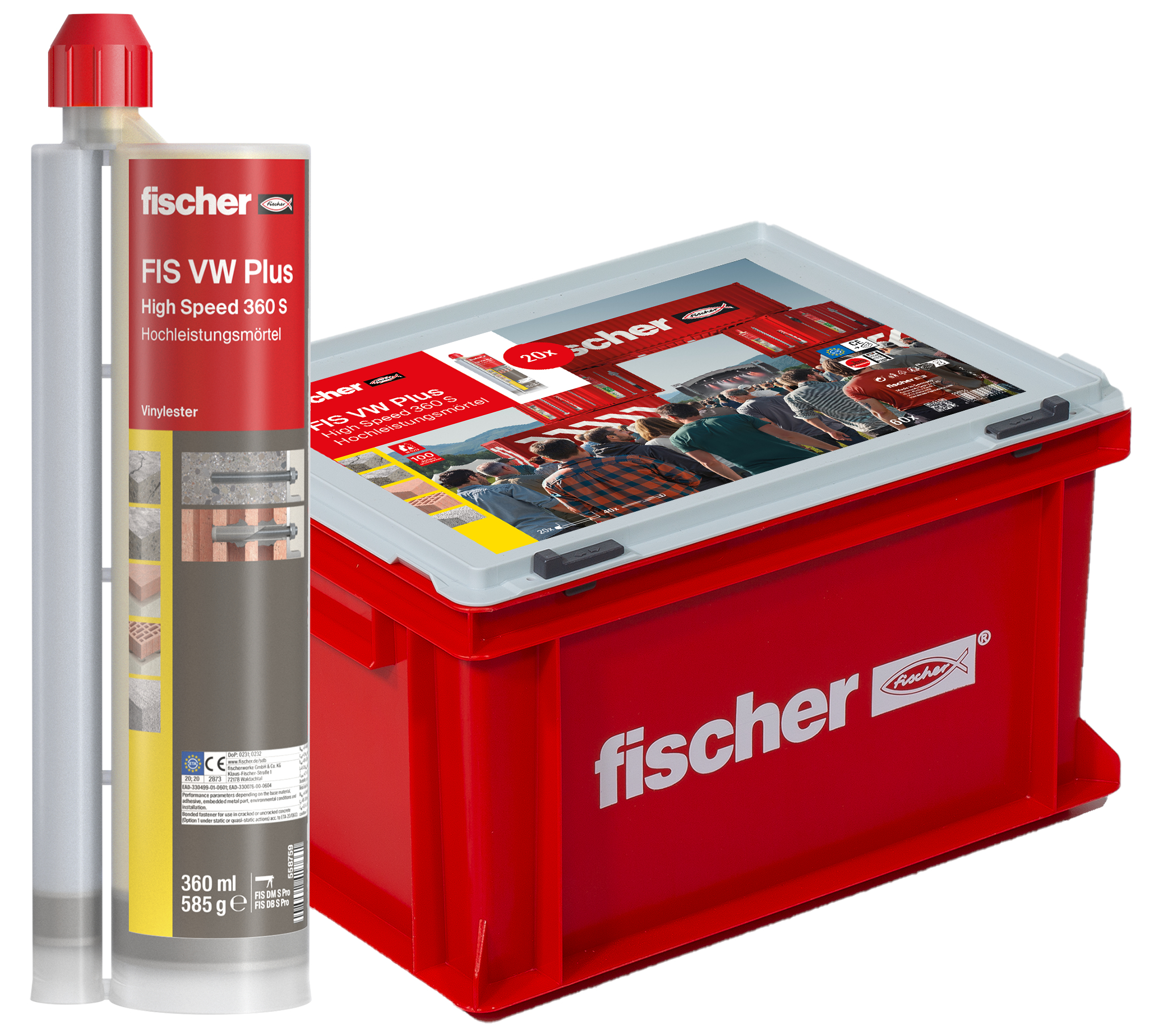- 20 Kartuschen Hochleistungsmörtel FIS VW Plus 360 S und 40 Statikmischer im stapelbaren HWK.
